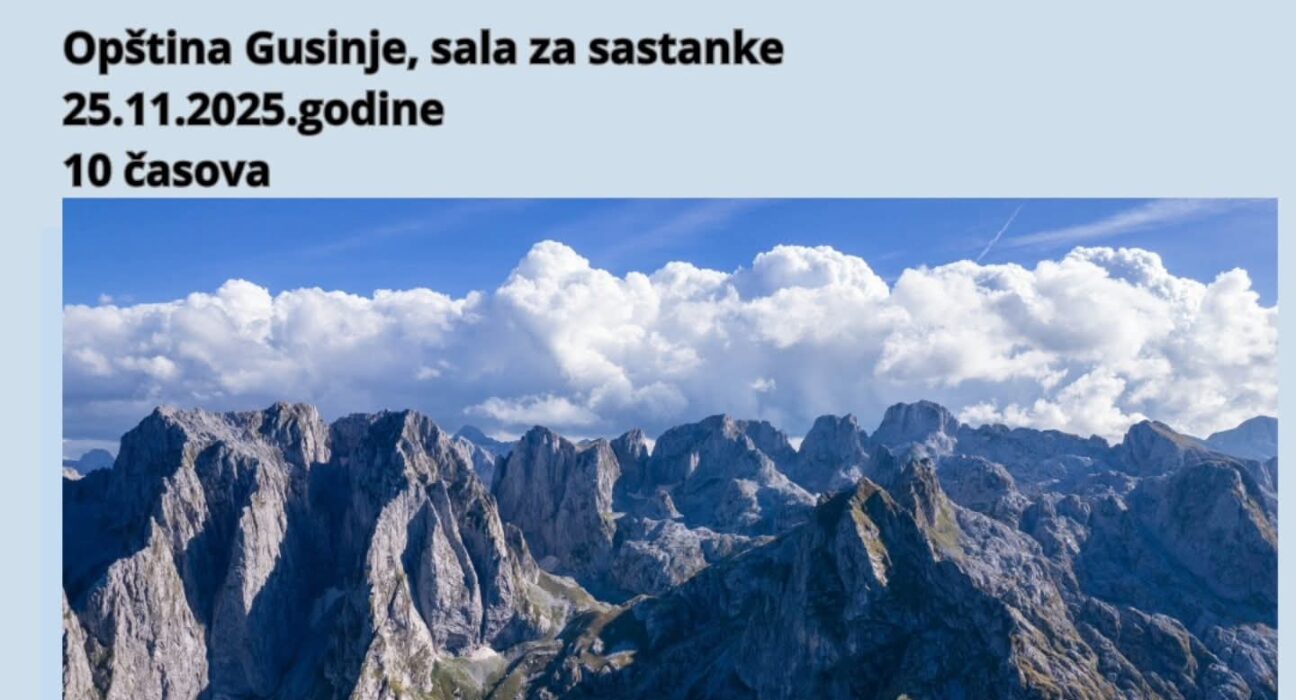 Javno preduzeće za nacionalne parkove Crne Gore i Nacionalni park Prokletije pozivaju sve zainteresovane da prisustvuju Sjednici Socio-ekonomskog savjeta, koja će se održati u Opštini Gusinje 25. novembra 2025. godine, sa početkom u 10 časova.